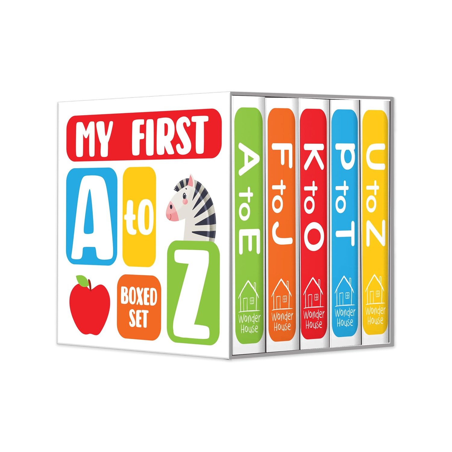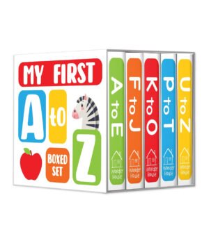 A to E – Meet apples, elephants, and everything in between! F to J – From fish to jar, explore fascinating objects. K to O – Discover the world of kites, owls, and more. P to T – Say hello to pandas, tigers, and terrific new words. U to Z – Unearth umbrella, zips, and other exciting surprises.