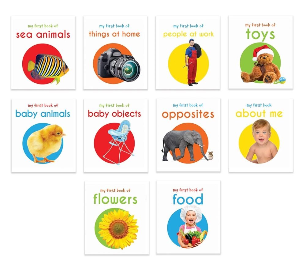 First mini library of 10 board books to develop basic concepts for little scholars. Well-researched pictures ensure faster development of a childs vocabulary.